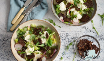 Denne lette og skønne forårsalat gør sig rigtig godt på frokostbordet. Lette salater blandet med andre grønne nuancer, de rød-hvide radiser og den gode Fynske Rygeost er for mig indbegrebet af forår. Tilsæt lidt ekstra nye kartofler, og ekstra rugbrødschips on the side, og den er også anvendelig som en let ret om aftenen.